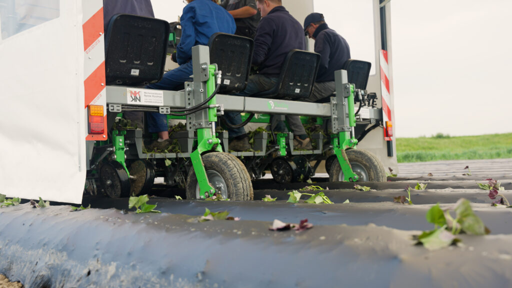 Om de stekken van de zoete aardappels (slips) onder de juiste hoek en de juiste hoogte in de grond te steken, heeft PlantTeq een zoete aardappel plantmachine ontwikkeld die de stekjes machinaal in de grond steekt.